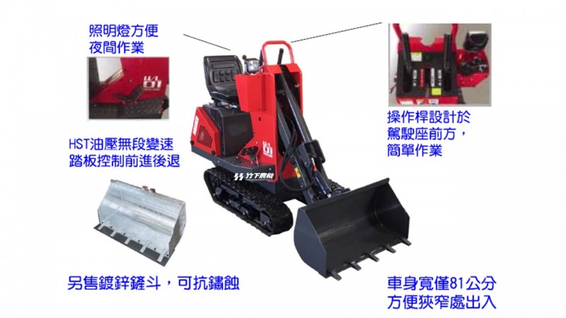 總重量 | 標準5爪斗400kg / 防鏽鍍鋅斗410kg | 鏟斗容積 | 0.07m³ | ||
